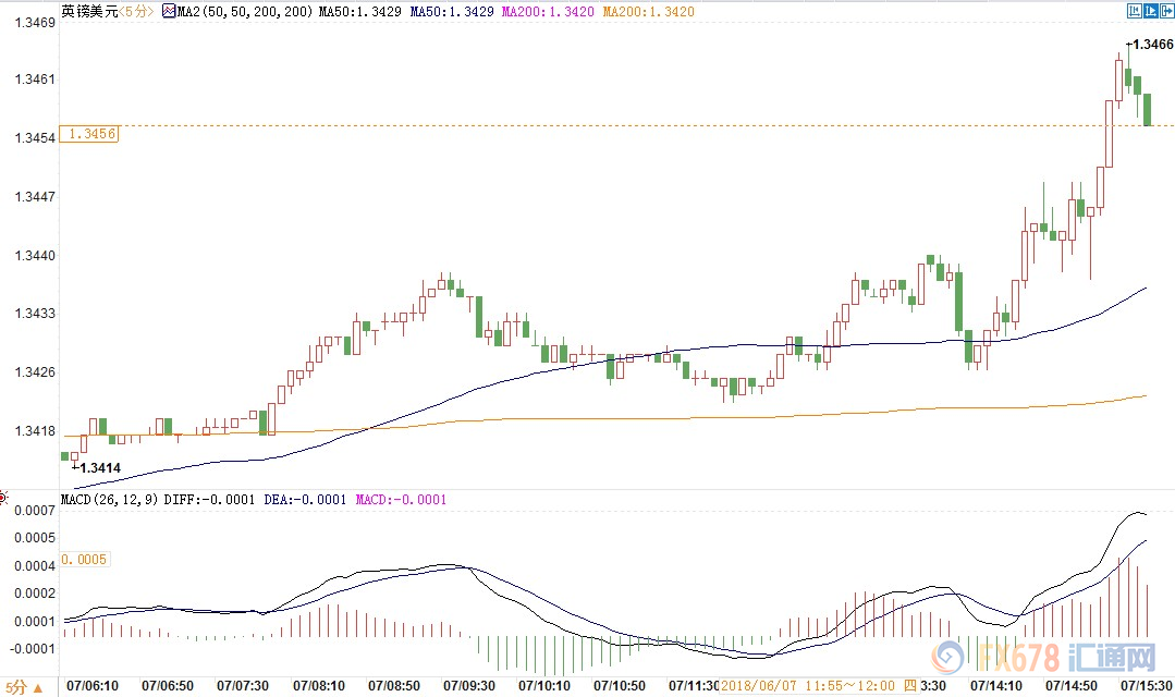 欧元兑美元延续反弹行情,虽然欧洲盘初公布的' 德国4月季调后制造业订单月率表现不佳,令欧元短线滑落,但由于美元持续走弱,欧元很快再创日内新高。此外,由于' 欧洲央行很可能将于下周讨论退出宽松政策时间表,预计欧元于短期内仍将获得支撑。此外,投资者需关注今晚公布的欧元区第一季度季调后GDP季率终值。