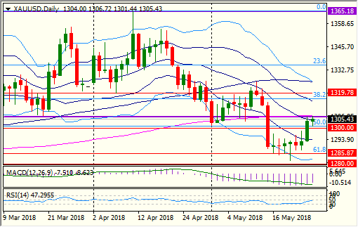 下方支撑位于1300、1290、1285.87' 美元附近。