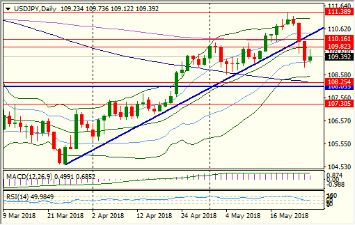 上方阻力位于20日均线109.82、上升趋势线及200日均线所在的110.16附近、111;