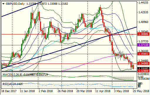 上方阻力位于1.34、1.35、200日均线1.3560。