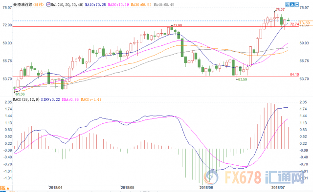 亚市盘中,美油现报73.71,跌幅0.14%。油价周一走高,此前上周公布的数据显示,美国原油库存降至三年来的最低水平。此外,美国和中国之间的贸易争端仍然是焦点。