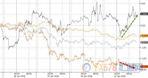 因费城联储公布的数据走弱以及英镑在英国央行转向鹰派后反弹,美元走弱。美国6月费城联储制造业指数为19.9,创下2016年11月来最低,这也是2014年2月以来的最大跌幅,美元应声下跌。