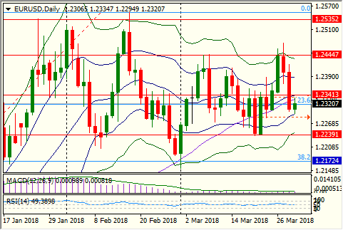 英镑兑美元亚欧时段震荡回落,刷新日低1.4034;近日中美贸易战风险下降,隔夜美国2017年第四季度GDP超预期上修,均利好美元,令英镑承压;此外,隔夜公布的英国3月CBI零售销售差值表现不佳,助涨了英镑空头的威势。