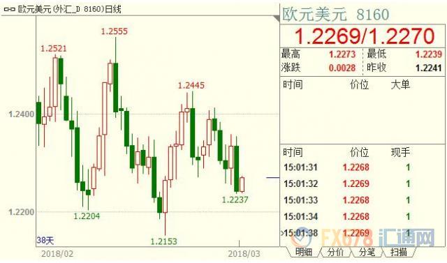 ' 欧元兑美元反弹0.19%至1.2264。但周二汇价收盘暴跌0.75%,并触及3月1日以来低位1.2237,美元指数因此录得3月1日以来新高90.445。