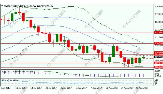 汇通网元易指出,周线图上,汇价三度受到108.13-108.81支撑区间支撑,但此次反弹动能疲弱,中性偏空;日线图上,汇价小幅反弹升破双布林带看跌通道MACD可能正形成金叉,趋势中性偏空;小时图上汇价持续运行于周四以来的上行通道之中,仍可能测试本周高点109.82;汇价总体趋势中性偏空,上方阻力位于109.82-110区间,以及上周高点110.94;下方支撑位于109关口以及上周低点108.60。
