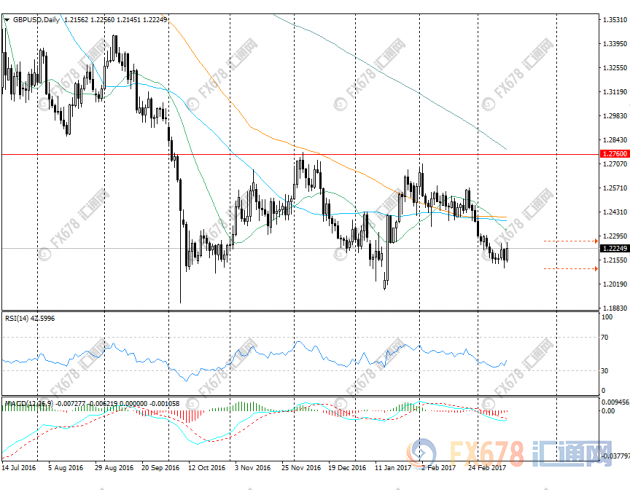 技术面上,英镑兑美元若突破目前日内高点1.2256或将进一步上探1.2327(20天日均线)以及1.2374(55日均线)附近。另一方面,下方支撑未关注1.2106(3月14日低点),1.2036(1月11日低点)和1.1979(1月16日低点)附近。