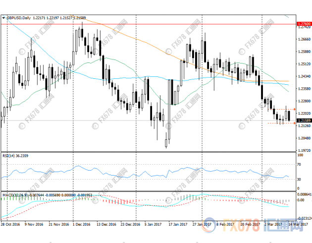 技术面上,英镑兑美元上方阻力位关注1.2200/11(整数关口/10日均线)和1.2250/53(心理水平/3月7日高点)以及1.2304(3月6日高点)附近。另一方面,下方阻力位在1.2160/42(经典第一支撑位/斐波那契第二支撑位)和1.2100整数关口,以及前期闪崩低点1.2050附近。