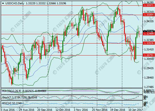 nload=imgresize(this); >日上图上来看,汇价日内失守布林带中轨1.33关口后反弹,再度收复该水平位;若汇价能有效站稳1.33关口上方,将可能进一步上测1.34关口、1.35关口以及2016年12月28日高点1.3597;反之,将可能重新开启跌势,下方支撑位于1.32关口以及2016年12月14日低点1.3079以及1月17日低点1.3017。 【免责声明】本文仅代表作者本人观点,与汇通网无关。汇通网对文中陈述、观点判断保持中立,不对所包含内容的准确性、可靠性或完整性提供任何明示或暗示的保证,且不构成任何投资建议,请读者仅作参考,并自行承担全部风险与责任。