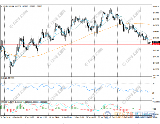 因美元的上涨,欧元兑美元承压跌至近一个月低位,目前投资者转向美国1月未季调CPI年率,美国1月零售销售月率以及' 美联储主席耶伦(Janet Yellen)向众议院金融服务委员会作半年度证词。