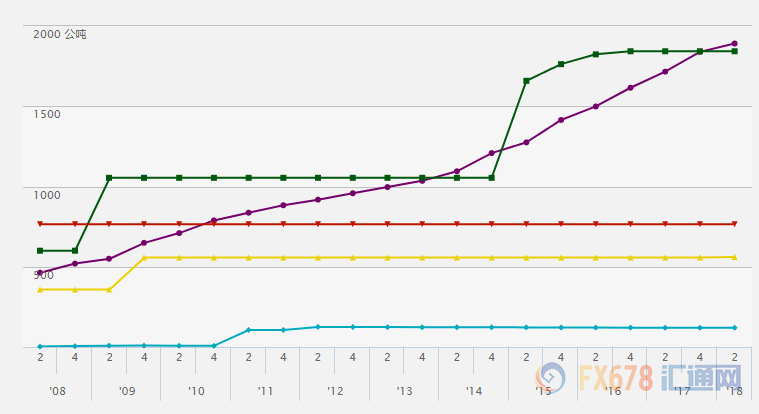 长期来看,各国官方黄金持仓数持续走高,2018二季度年' 俄罗斯1890.8公吨、中国1842.6公吨、日本765.2公吨、印度560.3公吨、墨西哥120.2公吨。金价后市可期。