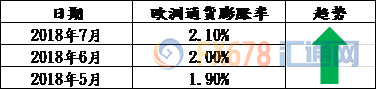 另一方面:此前,欧洲持续施行货币宽松政策导致经济复苏速度减缓。 二季度GDP 增速不及预期,经济增速放缓。二季度的GDP录得0。4%超于预期0。3%增长。值得乐观的是,2018年通胀数据保持良性上涨让人欣慰。