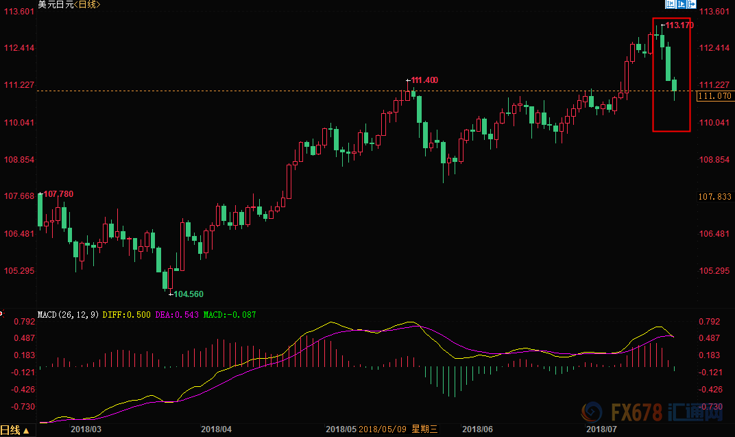 这使得美元兑日元跌至两周低点110.75,较不到一周前所及六个月高点113.18下跌逾2%。