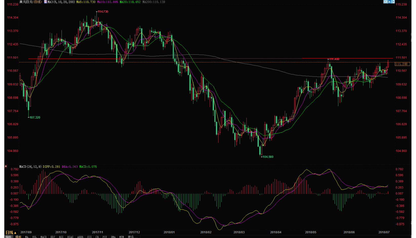 汇通网讯——美元反弹带动美元兑日元站上111关口,并一度刷新一个半月高位111.35,虽然市场对中美贸易争端的关注度略微降低,但北约峰会前火药味渐浓,特朗普对北约军费问题颇有异议,避险情绪再度悄然升温,汇价反弹恐难长久,且技术面逐步筑顶,未来十二个月恐再度回踩100整数关口。