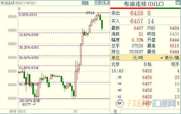 nload=imgresize(this); >1小时图上看,油价上一交易日反弹速度过快,必然面临盘整回调需求。美国原油下方支撑看到38.20%分割位60.19美元和50%分割位59.81美元,跌破61.8%分割位59.43美元价格将重新转空;布伦特原油下方支撑看到38.20%分割位63.93美元和50%分割位63.55美元,跌破61.8%分割位63.18美元,价格将重新转空。