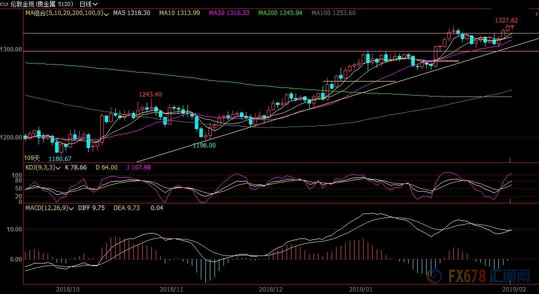 周二欧洲时段,现货黄金暂时在近十个月高位附近震荡,目前交投于1326.34美元/盎司,考虑到美联储会议纪要的鸽派预期,纪要出炉前,金价有望震荡上攻;若本交易日意外失守5日居心1318.30附近支撑,则削弱看涨信号。 【免责声明】本文仅代表作者本人观点,与汇通网无关。汇通网对文中陈述、观点判断保持中立,不对所包含内容的准确性、可靠性或完整性提供任何明示或暗示的保证,且不构成任何投资建议,请读者仅作参考,并自行承担全部风险与责任。