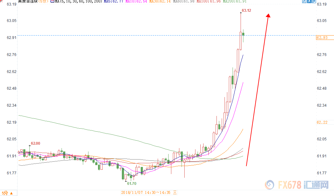 今日北京时间17:50左右据塔斯社援引消息人士称,' 俄罗斯与沙特正在讨论与2019年进行石油减产。消息公布后,美布两油短线双双飙升逾1' 美元,美油刷新日内高点至63.12美元/桶,布油涨近2%,创近二日新高至73.55美元/桶。