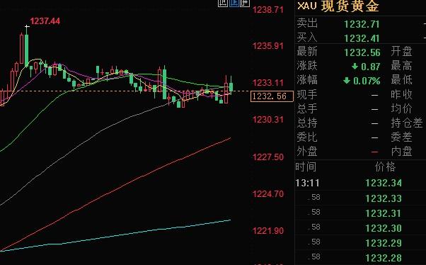 北京时间11月2日13:12,现货黄金报1232.56美元/盎司。