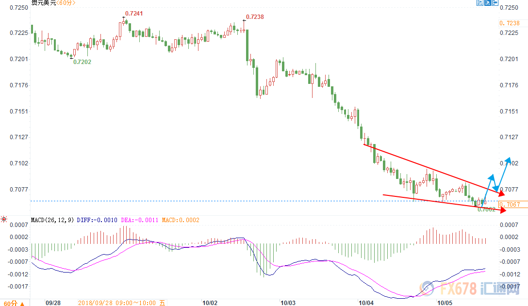 目前澳元上方最直接的压力是0.7096,只有明确站上这个位置,当前澳元中性偏空走势才会有所缓解。