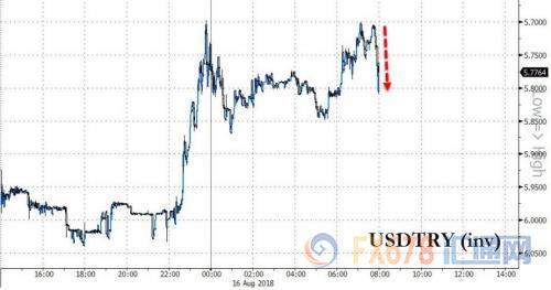 据报道称,6100位投资者聆听了8月16日晚土耳其财政部长召开的电话会议。土耳其财长Berat Albayrak表示,土耳其正在制定计划解决通胀及经常项目逆差存在的薄弱之处。缓解通胀是首要任务。此外,土耳其总统埃尔多安还与' 法国总统马克龙进行通话,强调增进经济和贸易关系的重要性。土耳其的担忧情绪暂时缓解,从而提振里拉反弹。