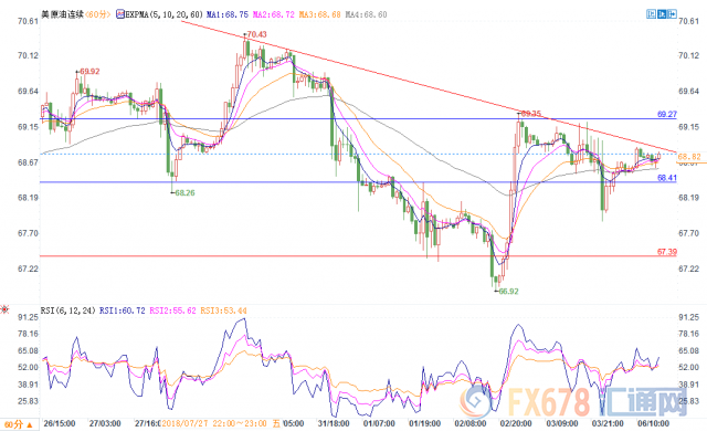 亚市盘中,美油现报68.77,涨幅0.41%。报告显示,' OPEC原油产量在7月份相比6月环比增加34万桶/日,其中最大出口国沙特的产能达到了接近历史极值的水平.