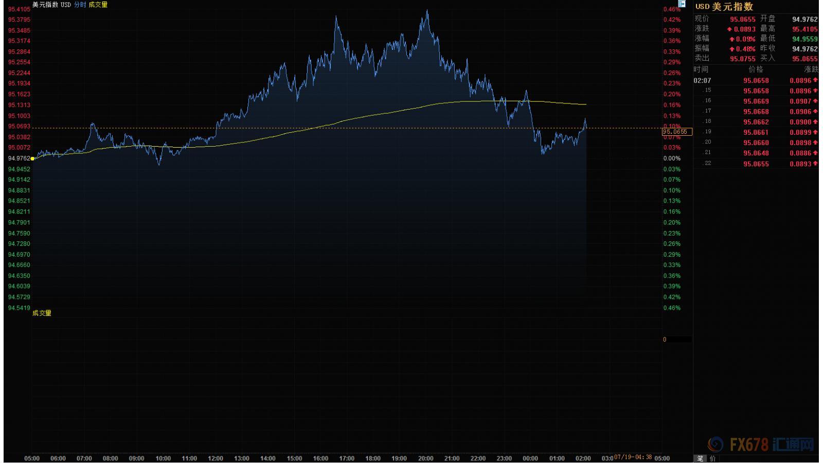 鲍威尔发表言论过程中,美元、黄金反应都较为平淡。目前美元报95.0655点,涨幅0.09%。