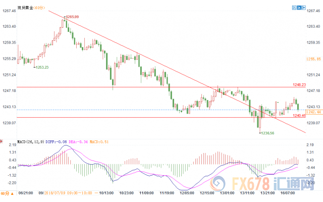 亚盘时段,现货黄金现报1242.81,跌幅0.12%。金价上周五一度刷新去年12月12日的低点,后跌幅缩窄因美指冲高回落。