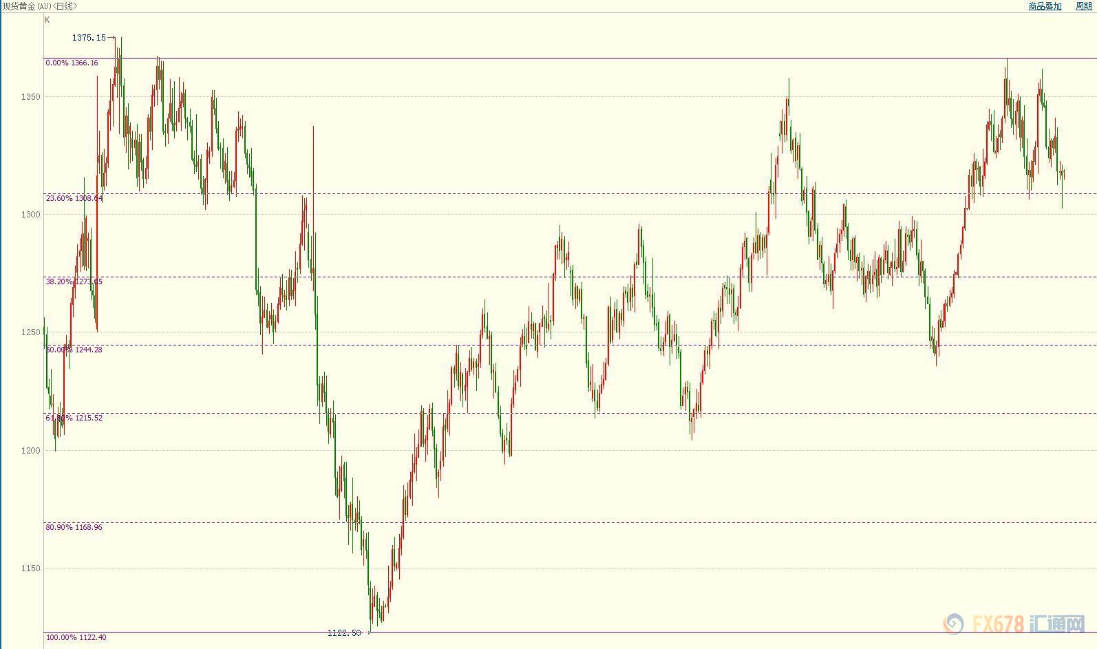 nload=imgresize(this); >日线图上的回档位分析表明,现货黄金或在1309-1330美元的窄幅区间内盘整数日。该区间由从1122.35美元到1366.07美元升势的23.6%和14.6%回档位构成。