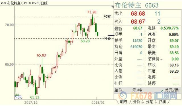 布伦特原油期货料将跌至1月19日低位68.28美元