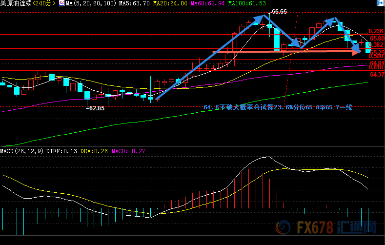 目前支撑位在64.95,64.50和64.00,而上方的阻力位在65.70,66.40和67.00。