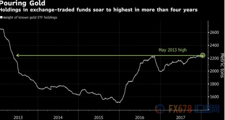 nload=imgresize(this); >全球黄金交易所交易基金(ETF)的持有量飙升至2013年以来的最高水平,大部分的资金流入都流入了美国的SPDR Gold Shares。该ETF基金走势基于对冲基金经理对金价走势的判断,而相对较高的流动性则是该基金受到青睐的一大原因。