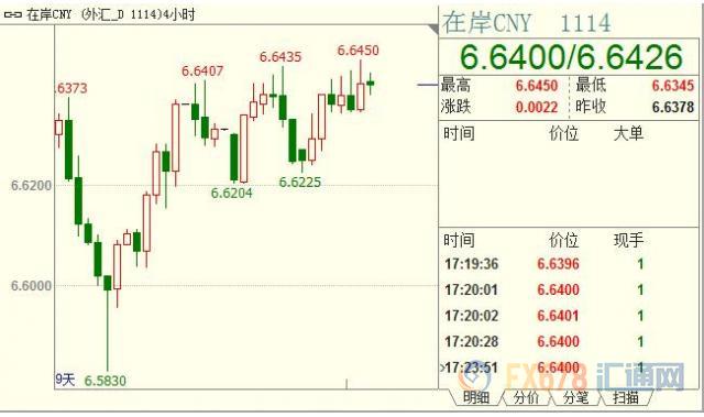 汇通网讯——11月10日,人民币兑美元即期微收跌,大部分时间维持在昨日收盘价附近,中间价则小升。交易员表示,中国金融市场放开对外资持股比例限制会带来资金流入,但需要一定的时间,在短期不会影响汇市。