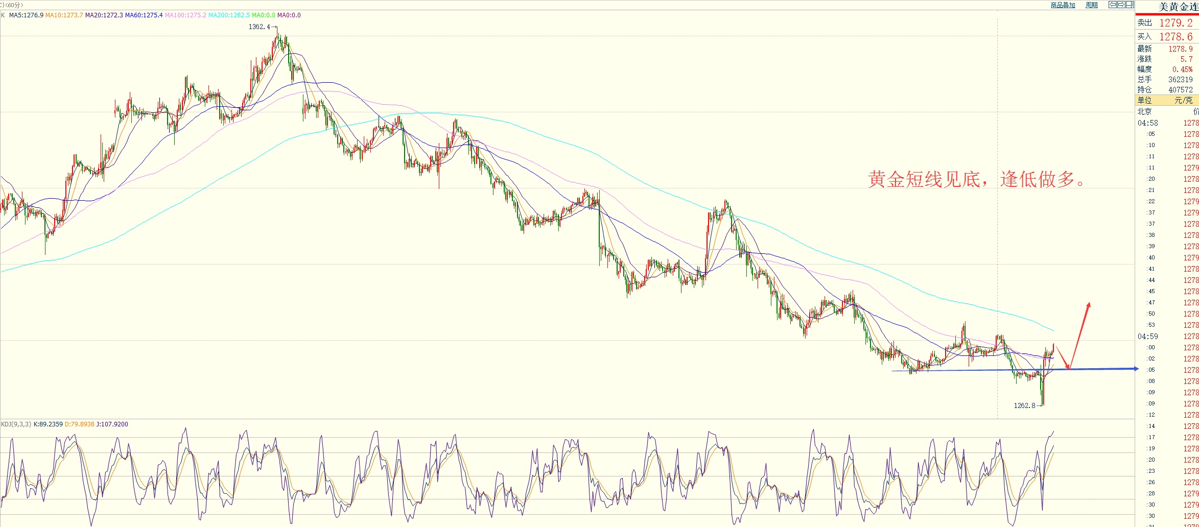 黄金下方在1271附近,1265 1260—1262有支撑,上方在1282 1284 1288---1290有压力。