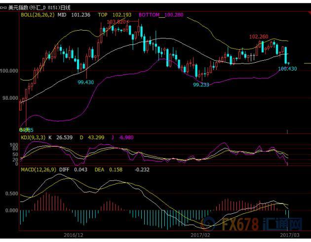 不过,周线级别布林线中轨支撑位于100.09附近,亦位于整数关口附近,短线有效跌破的难度较大,或将限制金价的上行空间。