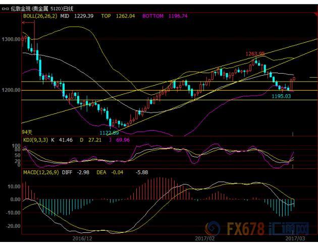 周四(3月16日)现货黄金小幅冲高,一度刷新逾一周高点至1224.98' 美元/盎司,尽管荷兰' 大选未生波澜,吕特料连任首相宝座,但因凌晨出炉的' 美联储利率决议的声明意外鸽派,耶伦的讲话对年内四次加息予以否认,令市场大为失望,美元重挫1%跌至一个月低位,给现货黄金逆袭提供了机会,不过上方仍有布林线中轨的重要阻力,有效突破的难度依然不小;日内仍有三大央行公布利率决议,投资者仍需予以关注。