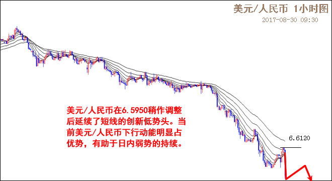 美元/人民币中期和短线方向均为向下,美元/人民币今天早盘延续了短线的创新低势头,日内下跌趋势不变。
