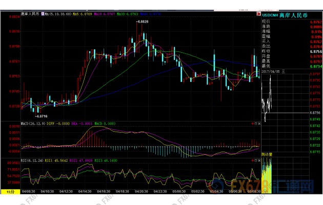 汇通财经易汇通行情软件显示,北京时间9:56,离岸人民币兑美元报6.8752/6.8774元,在岸人民币兑美元报6.8868/70元。