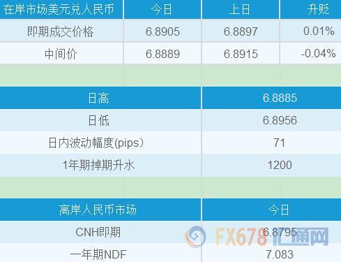 汇通网讯——3月30日,人民币兑美元即期微幅收贬,波动区间狭窄,中间价则小幅反弹。交易员称,隔夜美指继续走升,盘初有部分隔夜美元空头止损,但在6.8950附近受阻,汇价难以继续下行;尽管日内美指走升,但收盘前大行大量提供美元流动性支撑汇价,人民币仅微收贬7个点。