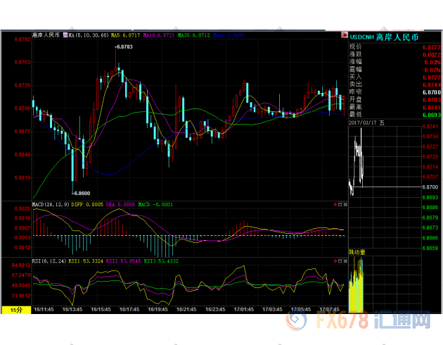 周五(3月17日)中国人民银行数据显示,' 人民币兑' 美元中间价报6.8873元,较上日下调11点。分析人士指出,市场对' 美联储加息预期充分,资产价格已提前做出反应,且美联储未暗示加快升息,因此美元继续上行动力不足,短期存在调整压力,人民币汇率面临的外部冲击暂缓。考虑到中国经济改善、内外利差适中、抑泡沫政策加强,人民币汇率有望保持总体稳定。