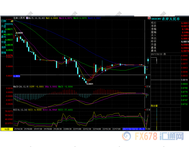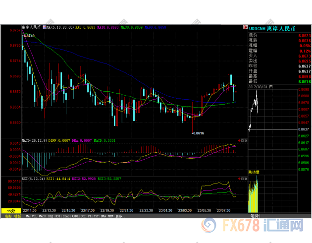 北京时间9:28,美元兑离岸人民币在开盘后小幅冲高近20点后回落,现交投于6.8656一线。