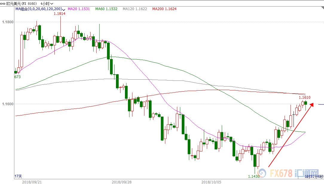 美元走弱影响,' 欧元也出现了一波上拉,但是欧盟和意大利在财政问题上的分歧仍悬而未决。