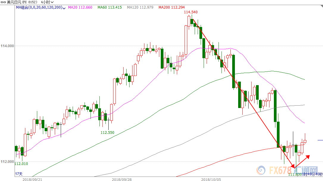 亚盘时段,美元日元现报112.40,涨幅0.21%。受美股续跌以及特朗普连续三日发难美联储的影响,市场的避险情绪有所回升,推升了日元等避险品种的进一步回升,这使得美元日元一度创出了9月19日以来的低点于111.83一线。