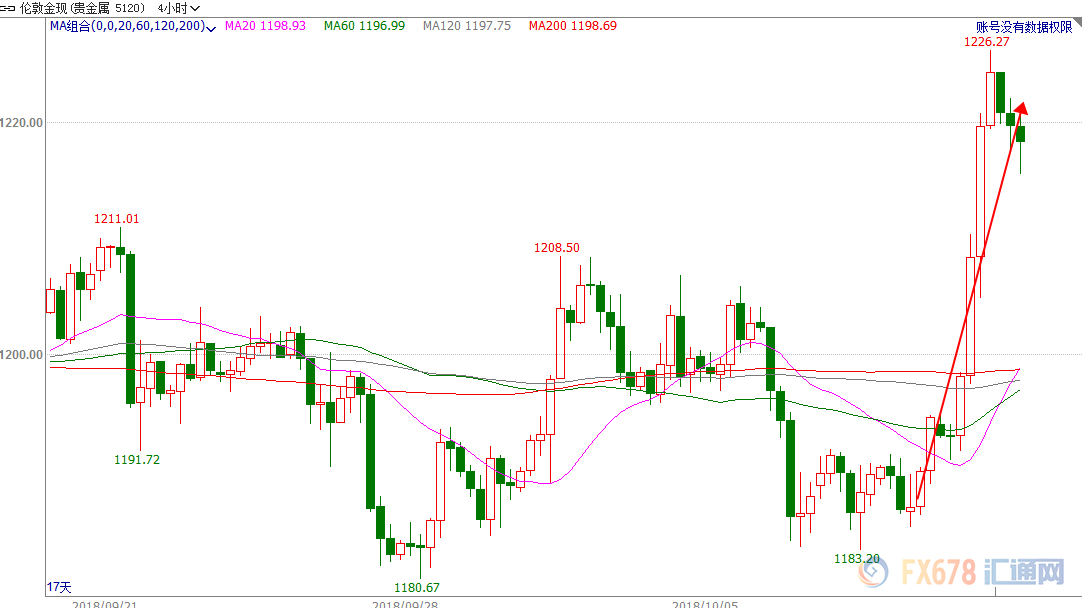 但是随着近两日美股的暴跌走势以及特朗普持续的炮轰美联储美元已经明显走弱了,这使得黄金的避险属性再次回升,这使得黄金连续突破了多个关键压力位,并一度站上1225美元一线上方。