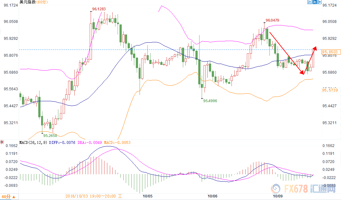 亚盘时段,美元指数现报95.76,跌幅0.01%。受全球贸易摩擦加深及意大利预算危机的双料打压,亚洲与欧洲金融市场在周一日内全线受挫,由此引发的避险资金流推动了美元走强,并一度触及96关口。