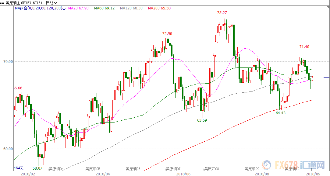 亚盘时段,美原油现报68.21美元,涨幅0.53%尽管伊朗遭受制裁被禁止出口原油带来的100万桶/日损失,其他产油国如委内瑞拉和墨西哥等也会面临因为自身因素造成的减产,但是这并未阻止近期油价持续下行的走势。