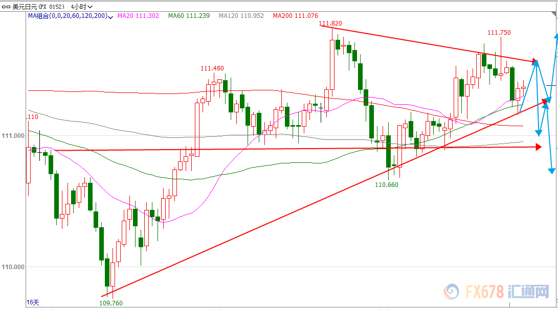 近期美元兑日元的走势总体上是跟着美元的强弱变化走动。昨晚受多名美联储官员偏鸽言论的影响,日元出现小幅的回升,同时美元兑日元创出近3日低点。