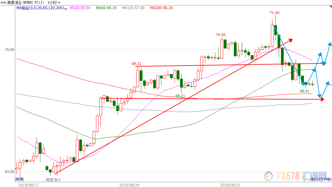 亚盘时段,美原油现报68.63美元,跌幅0.01%