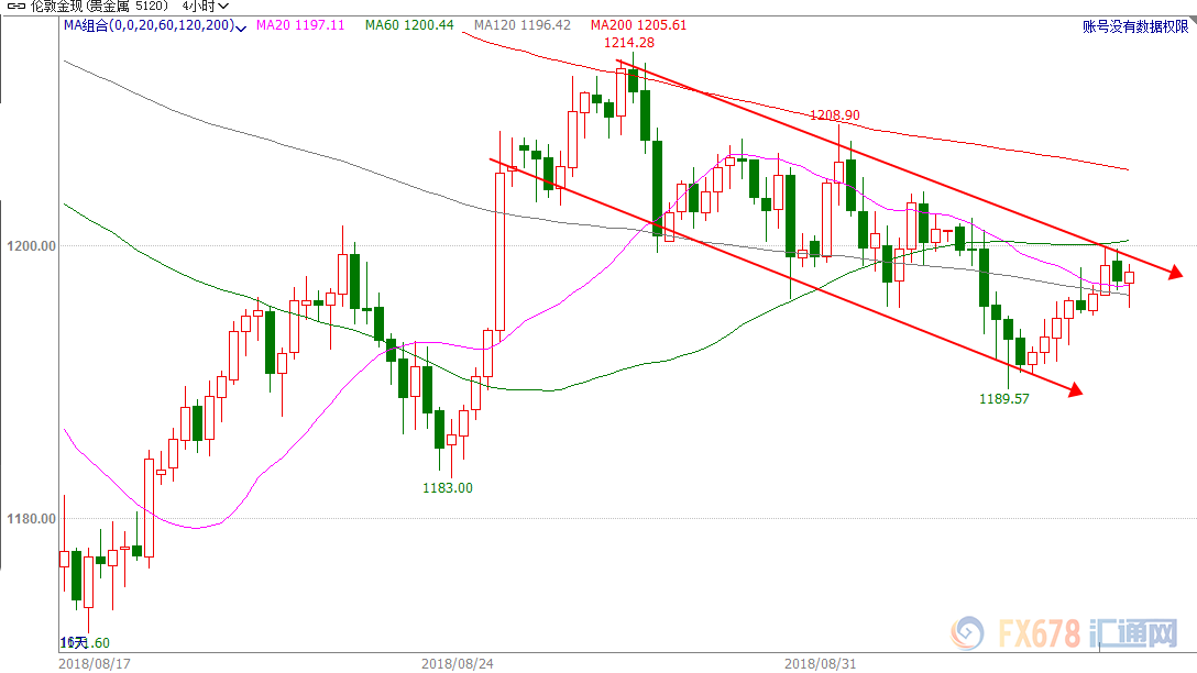 亚盘时段,现货黄金现报1195.50美元,涨幅0.08%
