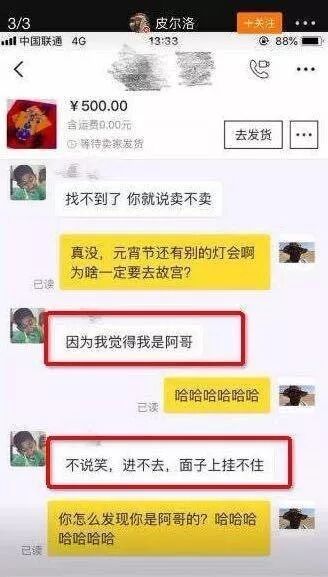 价格一路飙升到3000元、5000元……尽管有人评论:“免费预约的门票卖3000,也真好意思”,高价求故宫夜场门票的也大有人在。有网友贴出了一条闲鱼上的对话,能不能去故宫赏灯,甚至直接关系到了“面子”问题: