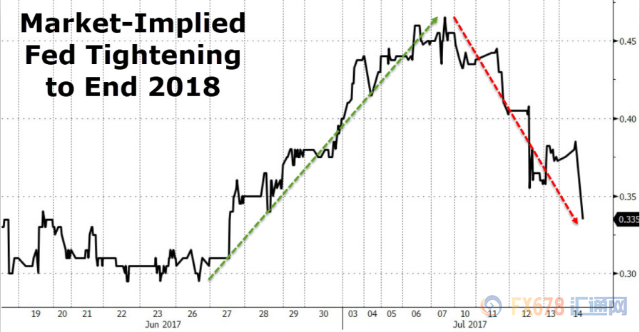 上周五(7月14日)公布的' 美国6月CPI数据连续第四个月不及预期,创9个月最低,核心CPI跌至2015年1月以来最低。上一次美国核心CPI出现这样的同比下降趋势,时任美联储主席的伯南克曾宣布扩大QE3(量化宽松)规模,而这一次CPI的再度下滑,已经令美联储官员更加担忧年内是否应再次加息。