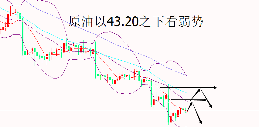 原油昨天在亚欧盘慢涨至43.20附近,虽然山海在昨天的博客中强调了43,20的压制力度,但美盘做空过早导致刚好止损在最高点,所以今日从新布局交易。而今天原油继续看43.20压制保持弱势不变,还是维持原有的思路,黄金破位43.20看震荡至44.00,不破43.20看空头弱势力度至42.20附近。小周期做原油目前的或许转势行情不要急,特别在亚欧盘行情中,本身力度较小,基本没有操作空间,就不需要多空来回做,而是等待适合的空间和重要点位操作即可,基本上是等待美盘的;利润空间。日内具体操作可看:反弹不破43.20做空,破位44.00-42.60震荡。
